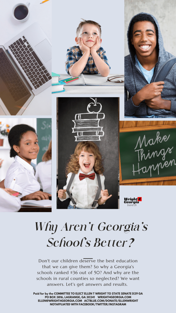 Let’s reverse the trend to mediocrity that Kemp has been feeding us as being “great schools” that aren’t. We can do better. We must do better. Let’s elect Democrats so we can.
